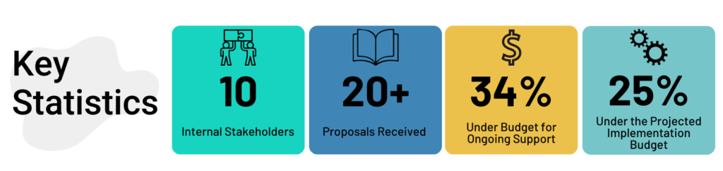 The RFP attracted 23 proposals, and six finalists advanced to the presentation stage. The OCR was pleased to announce that they successfully selected a clear winner following the presentations. The OCR contracted with its preferred vendor. Not only that, but the project is also 34% under budget for ongoing support and a whopping 25% under budget for the projected implementation.